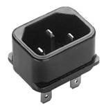 Socle connecteur 70°, 10 A, avec contact de protection, en option raccord à vis ou raccord enfichable 4,8 et 6,3 mm, bride à insérer.