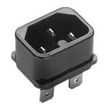 Socle connecteur 120°, 10 A, avec contact de protection, en option raccord à vis ou raccord enfichable 4,8 et 6,3 mm, bride à insérer.