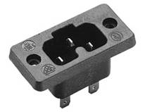 Socle connecteur 155°, 10 A, avec contact de protection, raccord enfichable 4,8 et 6,3 mm, bride longitudinale, écart entre les orifices de fixation 36 mm, fraisés.